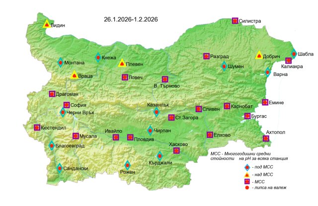 Картата на киселинността на валежите се публикува, ако е имало валежи.