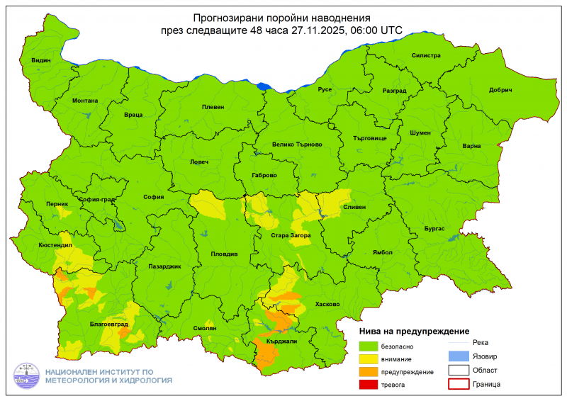 През нощта на 27 срещу 28.11. и на 28.11.2025 г. в: