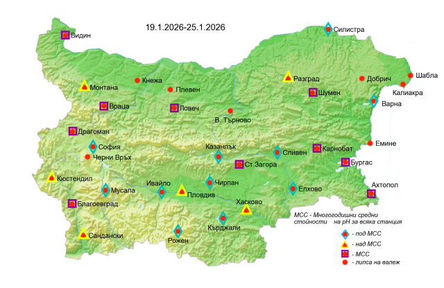 Картата на киселинността на валежите се публикува, ако е имало валежи.