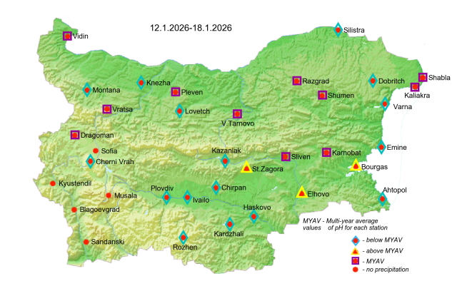 Acidity of Precipitation This map of precipitation acidity is issued every week if there was any precipitation. Language English