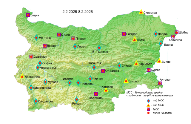 Картата на киселинността на валежите се публикува, ако е имало валежи.